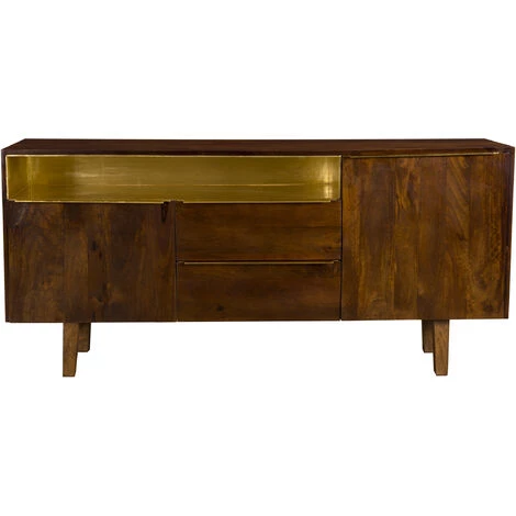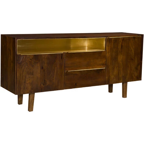 Buffet en bois de manguier 2 portes 2 tiroirs en métal couleur laiton – Taiko –