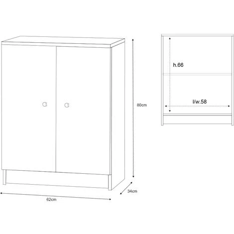 - Dimensions : 62 x 34 x 80 cm (largeur, profondeur, hauteur)