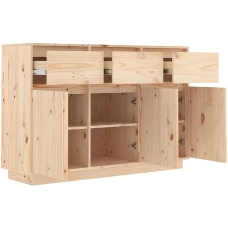 Ce buffet de style flottant est destiné à satisfaire vos différentes exigences et est un complément idéal à votre pièce. Matériau de première qualité : le bois de pin massif est un matériau naturel magnifique. Traitez la surface avec de l’huile, de la cire, de la laque ou une finition vitrée pour obtenir une surface plus résistante et un nettoyage facile. Le bois de pin a un grain droit et les nœuds donnent au matériau son aspect caractéristique et rustique.La construction de cette armoire à chaussures garantit sa robustesse, sa durabilité et son service à long terme.Espace de rangement : grâce aux 3 tiroirs et aux 6 compartiments, ce buffet offre suffisamment d’espace de rangement pour ranger vos magazines, livres, DVD et appareils multimédias à portée de main. Avertissement :Afin d’éviter qu’il ne bascule, ce produit doit être utilisé avec le dispositif de fixation murale fourni.