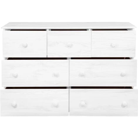 Ce buffet en bois, à l’aspect simpliste s’intègre parfaitement dans tous les styles d’intérieur. Le meuble de rangement est en bois de pin massif, robuste et spacieux. Il tire le meilleur parti de chaque centimètre d’espace dans votre maison. Dispose de 7 tiroirs, il offre beaucoup d’espace, vous pouvez placer un vase, un cadre photo, des plantes ou d’autres petits objets sur le dessus et ranger vos vêtements, livres, jouets, etc. dans les tiroirs, ce qui rend votre pièce bien rangée.