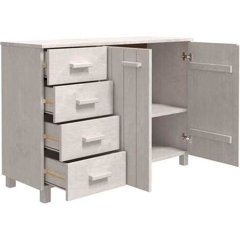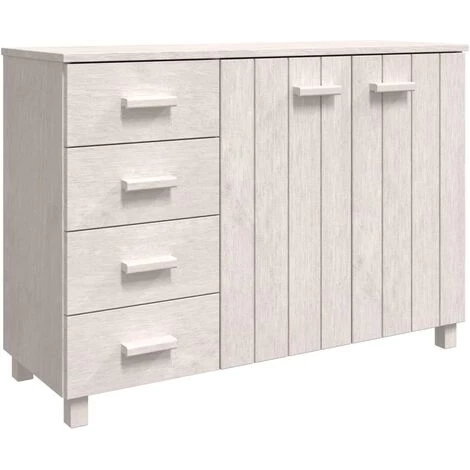Ce buffet en bois constitue un supplément décoratif et pratique à votre décor. Ce meuble à tiroirs est fabriqué en bois de pin massif, ce qui le rend stable et robuste. Le buffet haut est doté de 2 portes et de 4 tiroirs coulissants, offrant un espace de rangement suffisant pour que vous puissiez garder vos différents objets quotidiens bien organisés et à portée de main. De plus, le dessus robuste est parfait pour exposer des objets décoratifs, des cadres photo et des plantes en pot.