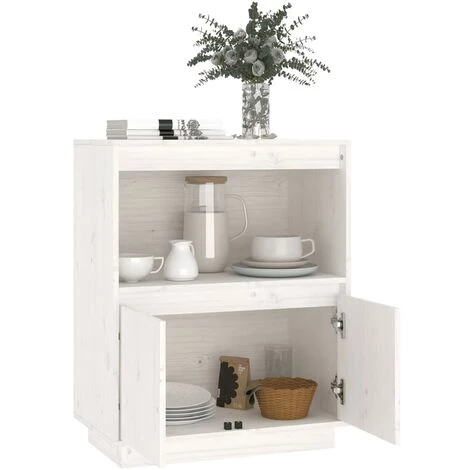 Ce buffet constitue un supplément décoratif et pratique parfait à votre décoration existante. Cette armoire de rangement est fabriquée en bois de pin massif, ce qui la rend stable et robuste. L’armoire latérale offre suffisamment d’espace de rangement pour les livres, les appareils multimédia et autres articles. Le dessus de table robuste est idéal pour exposer des objets décoratifs, des cadres photo ou des plantes en pot.
