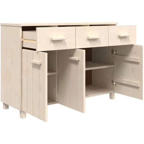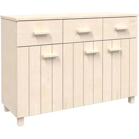 Ce buffet en bois constitue un supplément décoratif et pratique à votre décor. Ce meuble à tiroirs est fabriqué en bois de pin massif, ce qui le rend stable et robuste. Le buffet haut est doté de 3 portes et de 3 tiroirs coulissants, offrant un espace de rangement suffisant pour que vous puissiez garder vos différents objets quotidiens bien organisés et à portée de main. De plus, le dessus robuste est parfait pour exposer des objets décoratifs, des cadres photo et des plantes en pot.