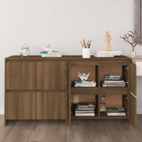 Ces buffets, dotés d’un design minimaliste, sont un supplément pratique mais également décoratif à votre maison. Avec 4 portes, l’armoire latérale offre un grand espace de rangement pour les livres, les appareils multimédia et d’autres articles. Le dessus de table robuste est idéal pour afficher des objets décoratifs, des cadres photo et des plantes en pot. De plus, l’armoire de rangement est facile à nettoyer avec un chiffon humide.