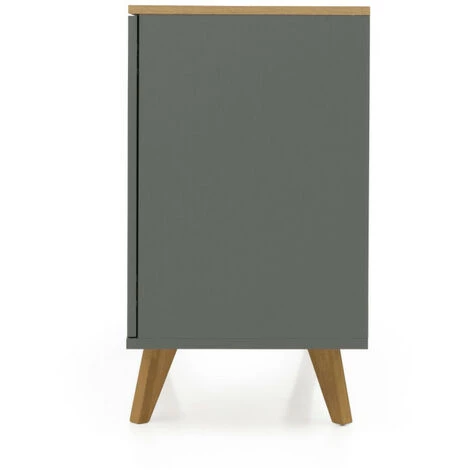 Maintenant, arrêtez-vous quelques instants sur l’esthétique de cette enfilade. Malgré son imposant volume de rangement, le meuble présente une allure légère et aérienne grâce à la présence des 4 pieds évasés situés aux extrémités. Le plateau en bois rappelle d’ailleurs la teinte du piétement et offre un bel équilibre de couleurs.