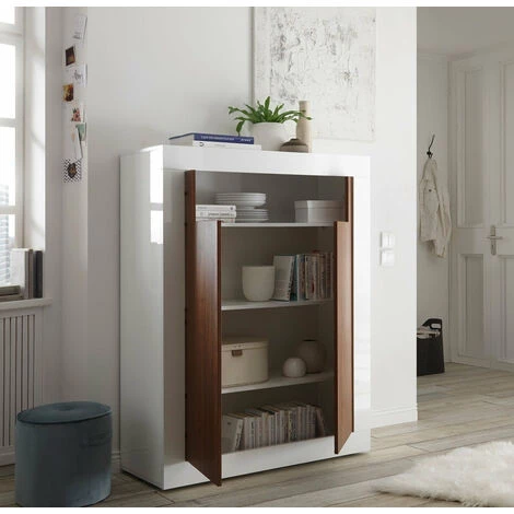 Buffet 2 portes LIPARI noyer• structure réalisée en mélamine anti-rayures laqué blanc brillant• façades en noyer foncé• nr.3 étagères en mélamine blanche• nr.2 portes• capacité de charge supérieure max Kg. 30• charge unique tablette max Kg. 10• dimensions cm. L.110 P.42 H.144• Made In Italy