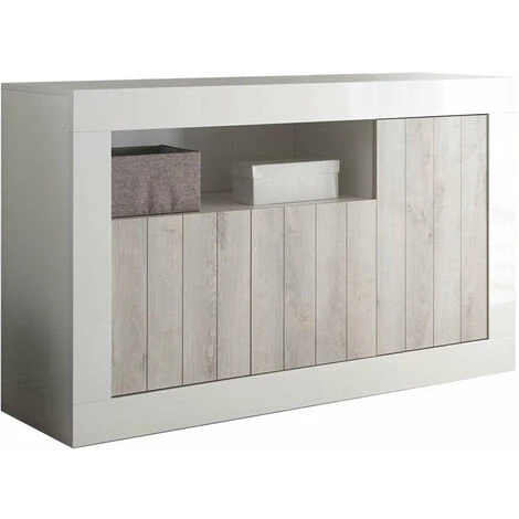Buffet 3 portes LIPARI blanc• structure réalisée en mélamine anti-rayures laqué blanc brillant• façades en pin blanc• nr.1 compartiment par jour• nr.3 portes avec ouverture réversible dx/sx en cours de montage• nr.2 étagères internes couleur blanc mat• capacité de charge supérieure max Kg. 30• charge unique tablette max Kg. 10• dimensions cm. L.138 P.42 H.86• Made In Italy