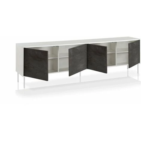 Buffet 4 portes BLOIS-S blanc/oxyde• en mélamine anti-rayures• en métal verni blanc mat• pieds réglables• nr.4 portes avec étagère intérieure, couleur oxyde• ouverture push• dimensions cm. L.238 P.50 H.72• Made in Italy