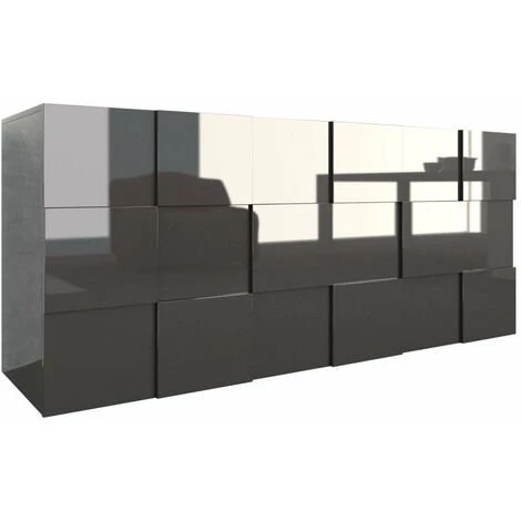 Buffet BRAMON anthracite• en mélamine résistant aux rayures laqué gris foncé brillant• façades réalisées avec effet damier• nr.3 portes avec ouverture réversible dx/sx en cours de montage• nr.6 étagères internes couleur gris mat• capacité de charge supérieure max Kg. 30• charge unique tablette max Kg. 10• dimensions du plateau cm. L.57,7 P.38• dimensions cm. L.180 P.42 H.84• Made In Italy