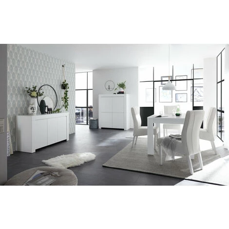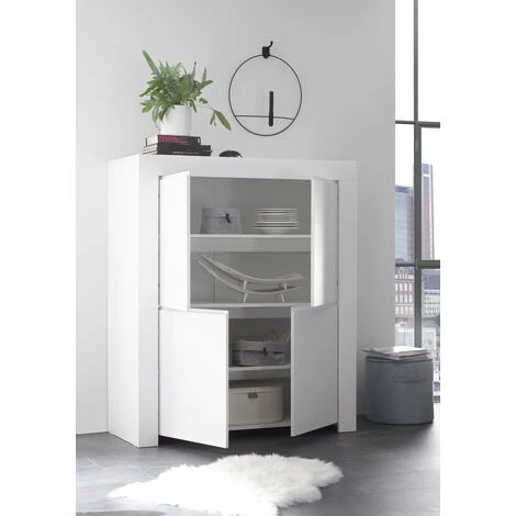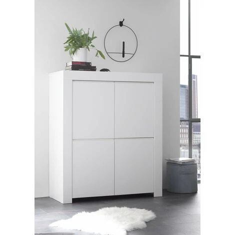 Buffet PANAMA blanc• fabriqué en mélamine résistant aux rayures laqué blanc mat• structure et portes d’épaisseur 22 mm• nr.4 portes en mélamine de couleur blanc mat, avec charnières amorties• nr.4 étagères internes couleur blanc mat• capacité de charge supérieure max Kg. 30• charge unique tablette max Kg. 10• dimensions cm. L.110 P.42 H.140• Made In Italy