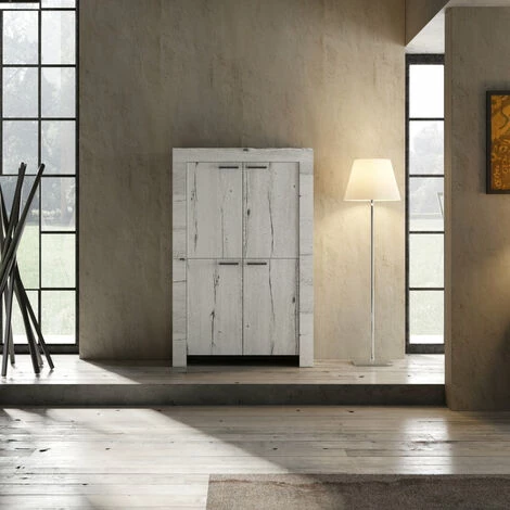 Buffet SAX blanc• en mélamine résistant aux rayures couleur chêne neige• poignée en métal verni couleur anthracite mat• nr.4 portes avec ouverture réversible dx/sx en cours de montage• nr.4 étagères internes couleur blanc mat• capacité de charge supérieure max Kg. 30• charge unique tablette max Kg. 10• dimensions cm. L.102 P.43 H.158• Made In Italy