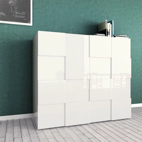 Meuble TV BRAMON blanc• en mélamine résistant aux rayures laqué blanc brillant• façades réalisées avec effet damier• nr.1 tiroir• nr.2 portes avec ouverture réversible dx/sx en cours de montage• nr.4 étagères internes couleur blanc mat• nr.1 plateau en verre trempé• capacité de charge supérieure max Kg. 30• charge unique tablette max Kg. 10• dimensions cm. L.180 P.42 H.57• conçu pour les kits LED (non inclus)• Made In Italy