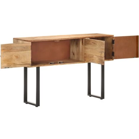 Ce buffet en bois ajoute un aspect industriel à votre décoration intérieure. L’armoire latérale est faite de bois massif de manguier avec une finition en bois naturel, un bois dur tropical avec la force de soutenir le poids. Il résiste également à l’usure du temps, ce qui le rend stable et durable. Le savoir-faire et les belles veines du bois rendent chaque meuble unique et légèrement différent l’un de l’autre. Elle dispose de deux compartiments derrière trois portes pour offrir un grand espace de rangement. De plus, le dessus robuste est idéal pour afficher des objets décoratifs tels que des cadres photo, des plantes en pot, des vases, etc. Remarque importante : les couleurs et les grains peuvent varier d’une pièce à l’autre, rendant chaque pièce unique ; la livraison est aléatoire.