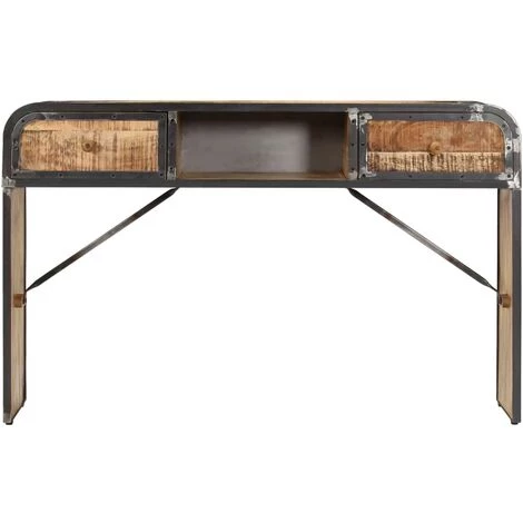 Ce buffet de style antique dégage un charme vintage et sera un supplément intemporel à votre intérieur. Cette table console est fabriquée en bois de manguier massif, un bois dur aux grains denses. Le bois de manguier brut a non seulement la force de supporter le poids, mais il résiste aussi à l’usure du temps. C’est pourquoi cette table d’entrée au design élégant est stable, durable et attrayante. La perfection de la fabrication garantit que chaque étape du processus est réalisée avec le plus grand soin, que ce soit le polissage ou le laquage. Le cadre en fer renforce le style industriel de l’armoire latérale. De plus, cette table d’appoint dispose de 2 tiroirs et d’un compartiment, offrant suffisamment d’espace pour ranger vos livres et divers autres articles. Remarque importante : les couleurs et les grains varient d’une pièce à l’autre, rendant chaque pièce unique ; la livraison est aléatoire.u