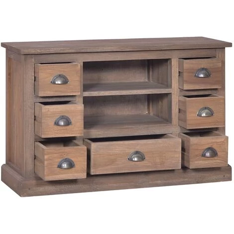 Ce buffet de style colonial dégage un charme rustique et sera le point central de votre chambre à coucher ou salon. Cette armoire latérale est faite de bois de teck massif avec la finition recyclée et la couleur naturelle, connue pour sa solidité exceptionnelle. Chaque étape du processus est effectuée avec le plus grand soin, que ce soit le polissage, la peinture ou le laquage. Cette armoire dispose d’un dessus robuste, ce qui la rend idéale pour afficher des objets décoratifs, des cadres photo ou même des plantes en pot. En même temps, ses 7 tiroirs et ses deux compartiments offrent amplement d’espace pour garder toutes sortes d’articles organisés et à portée de main. Remarque importante : les couleurs et les grains peuvent varier d’une pièce à l’autre, ce qui rend chacun de nos buffets unique ; la livraison est également aléatoire.