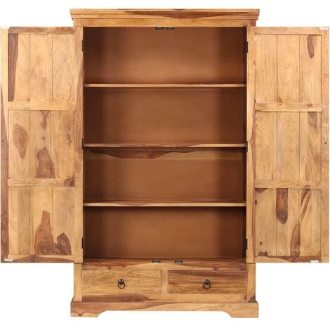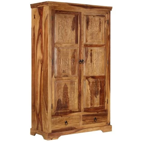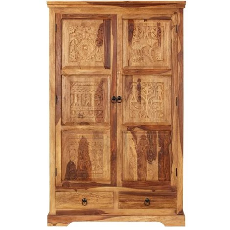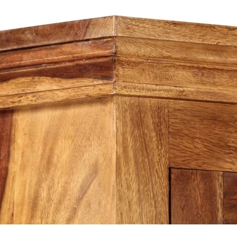 Ce buffet pratique et élégant ajoutera une touche de charme naturel à votre espace de vie. Il peut être utilisé comme buffet haut ou comme armoire de rangement. Ce buffet est fait de bois massif de Sesham, ce qui le rend durable et beau. Le Sesham est un bois dur tropical qui est célèbre pour ses grains riches et aussi connu sous le nom de bois de rose ou palissandre. Chaque étape du processus est réalisée avec le plus grand soin, que ce soit le polissage, la peinture ou le laquage. Le savoir-faire artisanal et les belles fibres du bois rendent chaque meuble unique et légèrement différent l’un de l’autre. Cette armoire dispose d’un vaste espace de rangement pour ranger vos objets importants de façon ordonnée et à portée de main. Il est également livré avec des sculptures uniques et créatives sur la porte pour ajouter du charme à cette armoire. L’article est déjà assemblé ; aucun assemblage n’est requis. Remarque importante : les couleurs et les grains varient d’une pièce à l’autre, rendant chaque pièce unique ; la livraison est aléatoire.