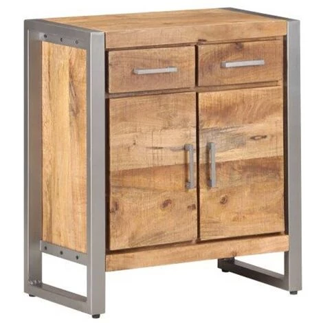 Ce buffet en bois ajoute un style industriel à votre salon. L’armoire latérale est faite de bois de manguier brut, un bois dur tropical avec la force de soutenir le poids. Il résiste également à l’usure du temps, ce qui le rend stable et durable. Le cadre en fer ajoute également une stabilité supplémentaire. Cette armoire comprend deux tiroirs et deux portes offrant un vaste espace de rangement. De plus, le dessus robuste est idéal pour exposer des objets décoratifs tels que des cadres photo, des plantes en pot, des vases, etc. Remarque importante : les couleurs et les grains peuvent varier d’une pièce à l’autre, rendant chaque pièce unique ; la livraison est aléatoire.