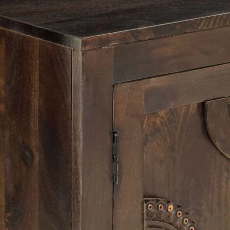Apportez le charme vintage dans votre intérieur avec notre magnifique buffet ! Ce buffet sera un supplément vraiment pratique et décoratif à votre décoration intérieure ! Ce meuble est fait à la main de bois de manguier solide, stable, durable et esthétique. Le savoir-faire ajoute à son style rétro spectaculaire. Chaque étape du processus est réalisée avec le plus grand soin, que ce soit le polissage, la peinture ou le laquage. Le savoir-faire et les beaux grains de bois font de chaque meuble un objet unique et légèrement différent l’un de l’autre. Équipé de 2 portes, ce buffet garde vos divers articles bien rangés et organisés. Les détails sculptés donnent à ce buffet une touche de charme élégant. Remarque importante : les grains et les couleurs varient d’un meuble à l’autre, ce qui rend chacun de nos buffets unique ; la livraison est aléatoire.