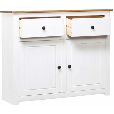 Avec un design rustique et tendance, ce buffet en bois de pin massif ajoutera une touche décorative et pratique à votre décoration. Conçu avec 2 tiroirs et 2 portes, le buffet garde vos magazines, livres, DVD et appareils multimédias bien organisés et à portée de main. Son dessus robuste est idéal pour placer des objets décoratifs tels que des vases ou des plantes en pot. L’armoire est en bois de pin massif. Chaque étape du processus est réalisée avec le plus grand soin, que ce soit le polissage, la peinture ou le laquage. L’artisanat exquis et les grains de bois esthétiquement attrayants rendent chaque meuble unique et légèrement différent l’un de l’autre. Remarque importante : les couleurs et les grains varient d’une pièce à l’autre, rendant chacun de nos meubles unique ; la livraison est aléatoire.