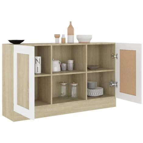 Ce buffet tendance, avec son utilité pratique, se veut un supplément idéal à votre pièce. Cette armoire de rangement, fabriquée en aggloméré de première qualité, est durable et stable. L’armoire dispose de 2 compartiments et de 2 portes, offrant un grand espace de rangement pour les livres, les appareils multimédia et d’autres articles, rendant votre pièce propre et bien rangée. Le dessus de table robuste est également idéal pour exposer des objets décoratifs, des cadres photo et des plantes en pot. De plus, cette armoire est facile à nettoyer avec un chiffon humide.