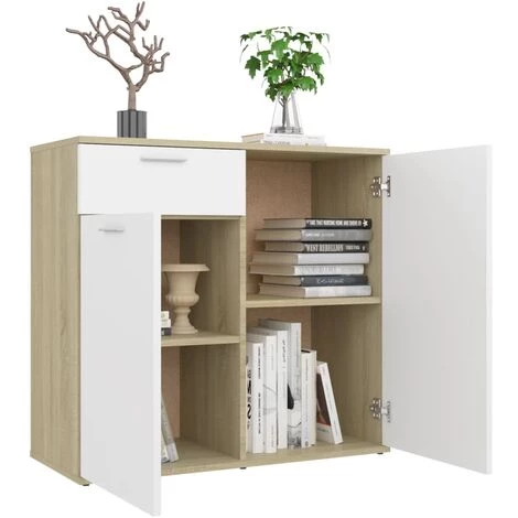 Ce buffet doté d’un design minimaliste sera un ajout pratique mais également très décoratif à votre maison. Avec 2 portes et un tiroir, le buffet offre un grand espace de rangement pour les livres, les appareils multimédias et d’autres objets. Le dessus robuste est idéal pour exposer des objets décoratifs, des cadres photo ou des plantes en pot. De plus, cette armoire est facile à nettoyer avec un chiffon humide.