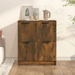 Introduisez un air de charme moderne dans votre intérieur existant avec ce buffet ! Matériau facile à nettoyer : le bois d’ingénierie est d’une qualité exceptionnelle avec une surface lisse et présente également résistance, stabilité et résistance à l’humidité. Fabriquée en bois d’ingénierie, l’armoire latérale est facile à nettoyer avec un chiffon humide.Grand espace de rangement : dotée de 4 portes, l’armoire offre un vaste espace de rangement pour organiser les objets.Dessus robuste : le meuble de rangement est doté d’un dessus robuste qui peut être utilisé pour exposer des objets décoratifs tels que des cadres photo ou des plantes en pot. Avertissement :Afin d’éviter le renversement, ce produit doit être utilisé avec le dispositif de fixation murale fourni.