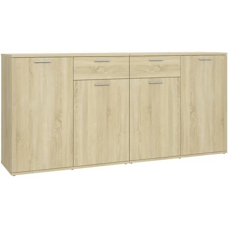 Ce buffet doté d’un design minimaliste sera un ajout pratique mais également très décoratif à votre maison. Avec 4 portes et 2 tiroirs au total, le buffet offre un grand espace de rangement pour les livres, les appareils multimédias et d’autres objets. Le dessus robuste est idéal pour exposer des objets décoratifs, des cadres photo ou des plantes en pot. De plus, cette armoire est facile à nettoyer avec un chiffon humide.