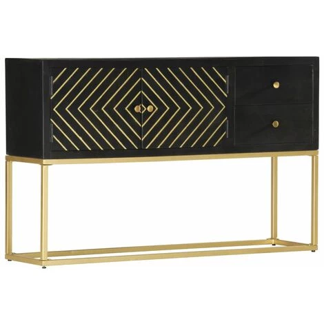 Ce buffet, avec une finition noire et dorée, apportera une touche intemporelle à votre décoration intérieure. Le buffet est fait en bois de manguier massif et est très stable et durable. Le dessus robuste est idéal pour placer des objets décoratifs tels que des vases ou des plantes en pot. Le meuble offre un grand espace de rangement pour garder vos objets divers bien organisés. Les motifs décoratifs contribuent au charme rustique du buffet. Le produit est facile à assembler. Remarque importante : les couleurs peuvent varier d’une pièce à l’autre, ce qui rend chaque pièce unique et légèrement différente l’une de l’autre ; la livraison est aléatoire.