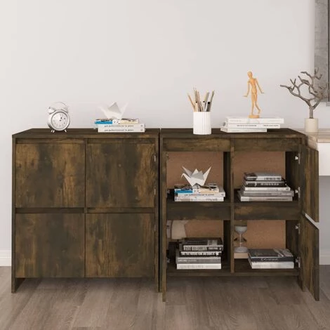 Ces buffets, dotés d’un design minimaliste, sont un supplément pratique mais également décoratif à votre maison. Avec 4 portes, l’armoire latérale offre un grand espace de rangement pour les livres, les appareils multimédia et d’autres articles. Le dessus de table robuste est idéal pour afficher des objets décoratifs, des cadres photo et des plantes en pot. De plus, l’armoire de rangement est facile à nettoyer avec un chiffon humide.