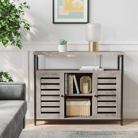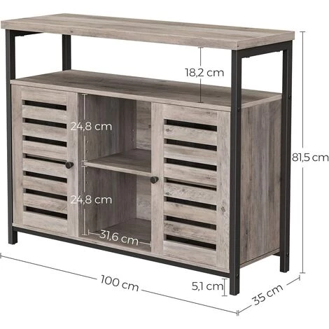 - À CHACUN SA PLACE : Avec un dessus spacieux, 1 grand compartiment ouvert, 3 petits compartiments ouverts et 2 étagères réglables cachées derrière 2 portes persiennes, ce meuble offre beaucoup d’espace de rangement pour les décorations, les ustensiles de cuisine et plus encore