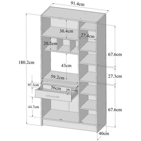- Dimensions totales : L91 x P40 x H180 cm