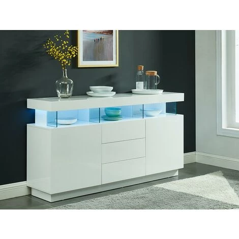 Très fonctionnel grâce à ses 3 niches, ses 3 tiroirs et ses 2 portes, ce buffet se démarque aussi par ses LEDs multicolores, qui en font un véritable élément de déco design et audacieux !