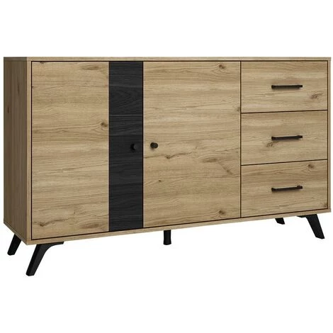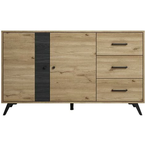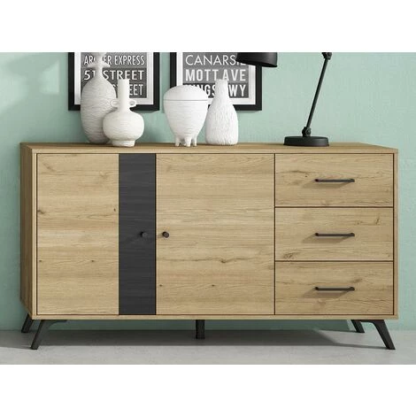 La collection PORTLAND s’intègrera parfaitement à la décoration de votre séjour. En effet, la combinaison des couleurs chêne et noir apportera une ambiance moderne et industrielle à votre pièce. Ce buffet est doté de nombreux rangements qui vous permettront d’organiser votre vaisselle en toute simplicité.