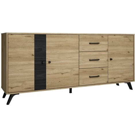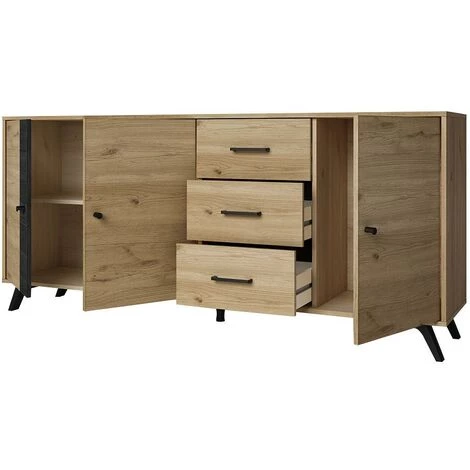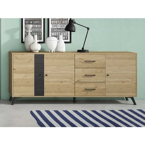 La collection PORTLAND s’intègrera parfaitement à la décoration de votre séjour. En effet, la combinaison des couleurs chêne et noir apportera une ambiance moderne et industrielle à votre pièce. Ce buffet est doté de nombreux rangements qui vous permettront d’organiser votre vaisselle en toute simplicité.