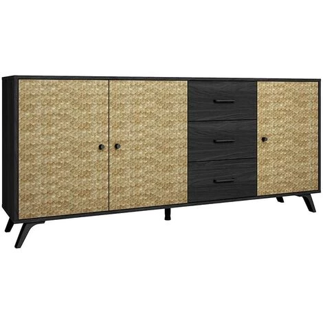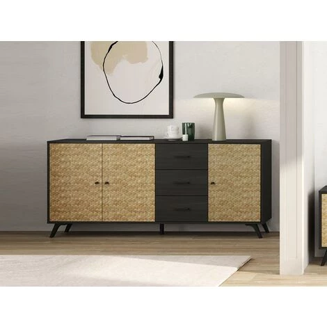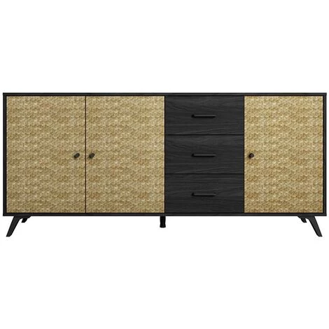 La collection WACO vous offre un mobilier pour un salon complet ! Avec son coloris noir et sa sérigraphie en motifs effet rotin, elle vous propose de nombreux rangements aussi bien dans la table basse, que le meuble TV et les buffets !