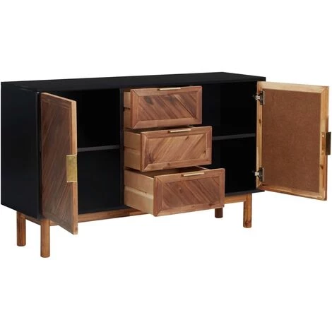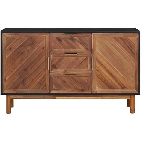 Le buffet en bois est habilement fabriqué à partir de bois d’acacia massif et de MDF, ce qui le rend très robuste et durable. L’armoire comprend 3 tiroirs et 2 portes offrant un grand espace de rangement pour les livres, les appareils multimédias et autres articles essentiels. Le dessus du buffet est idéal pour exposer des objets décoratifs, des cadres photo ou des plantes en pot. Les poignées en aluminium doré rendent également le meuble de rangement élégant.