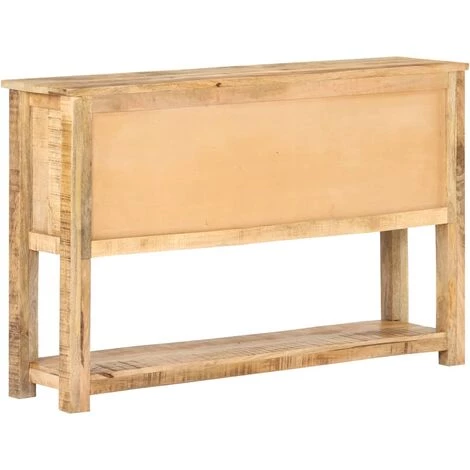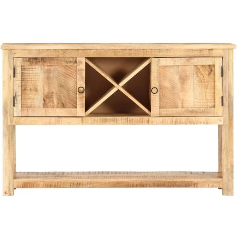 Cette armoire latérale est faite de bois de manguier brut, un bois dur tropical avec la force de soutenir le poids. Il résiste également à l’usure du temps, ce qui le rend stable et durable. Le savoir-faire et les beaux grains de bois rendent chaque meuble unique et légèrement différent l’un de l’autre. Ce buffet comprend également 2 portes, 1 étagère et 1 compartiment central divisé en quatre petits compartiments par deux panneaux croisés, ce qui offre un grand espace de rangement pour garder vos articles essentiels organisés et à portée de main.