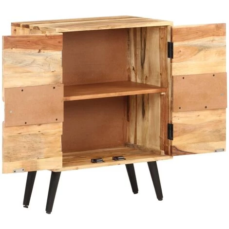 Cette armoire latérale est fabriquée en bois d’acacia massif, un bois dur avec des grains denses. Cette armoire magnifiquement conçue est durable et accrocheuse. De plus, l’artisanat exquis et les magnifiques grains de bois rendent chaque pièce légèrement différente l’une de l’autre. Avec les pieds en fer enduit de poudre, le buffet est stable et robuste. De plus, vous disposez d’un vaste espace de rangement pour vos objets essentiels à l’intérieur de deux étagères avec portes.