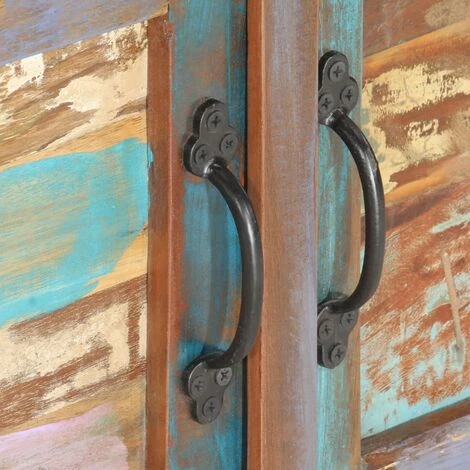 Ce placard de rangement est fabriqué en bois de récupération massif, ce qui signifie que chaque meuble est unique et légèrement différent l’un de l’autre. Les meubles en bois de récupération ont les caractéristiques de différents bois comme le teck, le bois de manguier et l’acacia. Le bois de récupération est solide, stable, durable et beau. Des signes d’usure et une structure de grain visible donnent à chaque pièce sa propre histoire et un aspect unique.