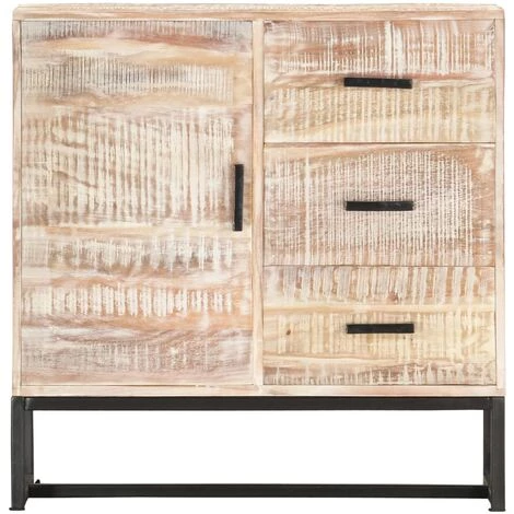 Fabriqué avec expertise en bois d’acacia massif et en acier enduit de poudre, le buffet est très robuste et durable. Le bois d’acacia est un bois dur tropical avec de beaux grains, qui est durable. Chaque pièce de ce meuble est unique et légèrement différente l’une de l’autre. Il a trois tiroirs et une porte, qui offrent un grand espace de stockage pour les livres, les supports multimédia et autres articles. Les tiroirs et la porte de l’armoire ont des poignées d’aspect laiton qui ajoutent au style rétro tandis que le dessus est idéal pour afficher des objets décoratifs, des cadres photo ou des plantes en pot. Le buffet est facile à assembler.