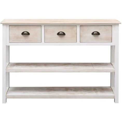 Ce buffet en bois accrocheur sera un excellent supplément au décor de votre pièce. Bois de paulownia massif : le bois de paulownia massif est un magnifique matériau naturel. Le bois de Paulownia est très résistant aux insectes et à la pourriture.Grand espace de rangement : l’armoire latérale dispose de 3 tiroirs et de 2 étagères, offrant un espace de rangement suffisant pour garder vos différents articles soigneusement organisés.Dessus robuste : son dessus robuste est idéal pour placer des objets décoratifs tels que des vases ou des plantes en pot. Avertissement :Afin d’éviter qu’il ne bascule, ce produit doit être utilisé avec le dispositif de fixation murale fourni.