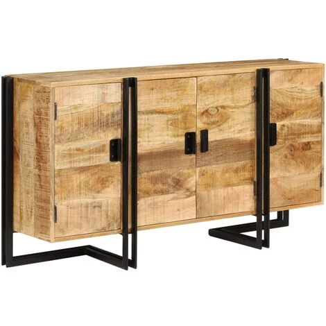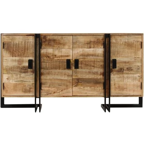 Le buffet est en bois de manguier massif, très stable et durable. Le bois de manguier est un bois dur fort et dense qui a des belles stries et des contours bruns ou dorés sur sa surface. Le dessus robuste est idéal pour placer des objets décoratifs comme des vases ou des plantes en pot. L’armoire offre suffisamment d’espace de rangement pour ranger divers articles ménagers. Les cadres en acier renforcent le style industriel de l’armoire. Un grand soin a été apporté à chaque étape du processus de fabrication, que ce soit le polissage, la peinture et le laquage. L’assemblage est facile.