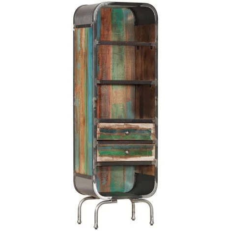 - Matériau : bois de récupération solide avec une finition de couleur mélangée, fer