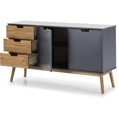 VS VENTA-STOCK BUFFET JAVA 2 PORTES ET 3 TIROIRS GRIS ANTHRACITE ET CIRE – GRIS ANTHRACITE ET CIRE