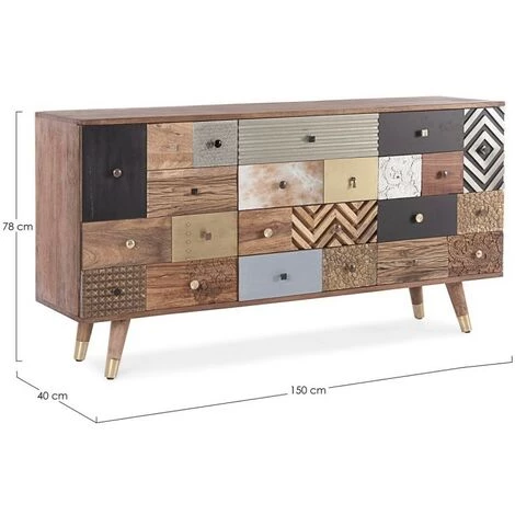 - porte d’entrée en manguier et acacia recyclés, structure de tiroirs en manguier et acacia