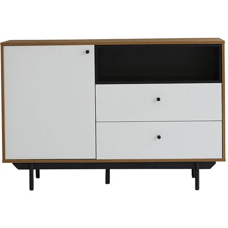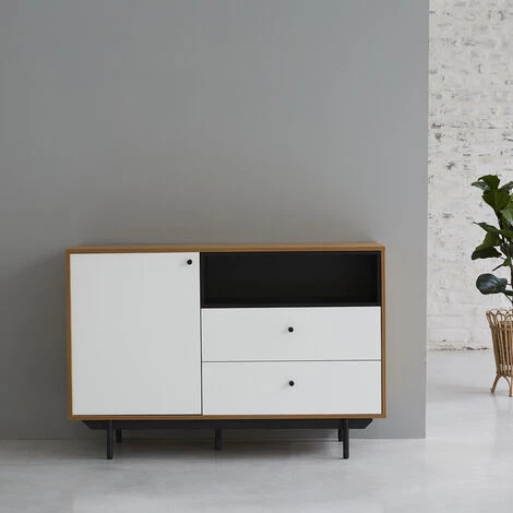 Moderne et pratique, ce joli buffet est composé de nombreux rangements : 2 tiroirs, un placard et une niche ouverte. A placer dans votre entrée ou dans votre salle à manger, il s’immiscera facilement dans tous les styles d’intérieurs.