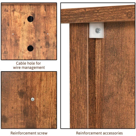 Système de gestion des câbles performant : l’arrière dispose de deux trous pour les câbles qui peuvent vous aider à gérer et à dissimuler les fils en désordre et à garder l’espace bien rangé. En même temps, la partie supérieure est dotée d’une rainure qui laisse suffisamment d’espace pour le cordon d’alimentation du téléviseur et qui permet de placer le téléviseur près du mur.