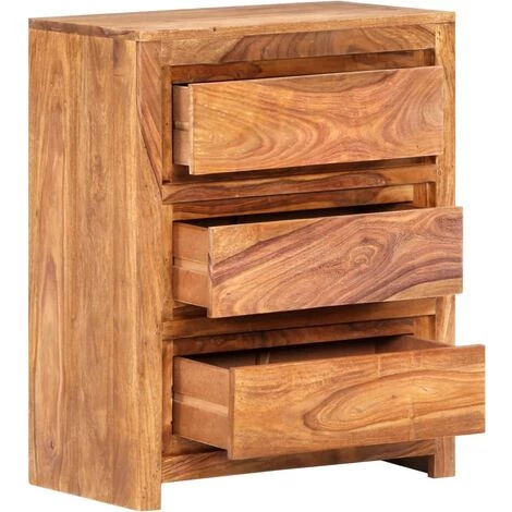L’armoire à tiroirs en bois est très pratique et elle fera une belle addition à votre maison ! Cadre durable : le bois d’acacia massif est un matériau naturel magnifique. Traitez la surface avec de l’huile, de la cire, de la laque ou une finition vitrée pour obtenir une surface plus résistante et un nettoyage facile. Le bois d’acacia est un bois dur tropical, qui est dense, robuste et durable.Espace de rangement suffisant : elle est équipée de 3 tiroirs, ce qui offre un espace de rangement suffisant pour conserver vos effets personnels.Conception simple : l’armoire à tiroirs en bois au design simple peut s’adapter à n’importe quel décor. Remarque :Les couleurs varient d’une pièce à l’autre, rendant chaque pièce unique ; la livraison est aléatoire.AVERTISSEMENT :Afin d’éviter qu’il ne bascule, ce produit doit être utilisé avec le dispositif de fixation murale fourni.