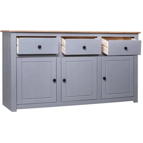 Introduisez un air d’élégance et de commodité dans votre intérieur avec notre buffet en pin massif ! Fabriqué en bois de pin massif, ce meuble à tiroirs est extrêmement durable et robuste. Le meuble latéral offre un grand espace de rangement avec 3 tiroirs et 3 compartiments. En outre, le dessus robuste est idéal pour afficher des objets décoratifs tels que des cadres photo, des plantes en pot, des vases, etc. Il est facile de nettoyer avec un chiffon sec. Le coffre de rangement est facile à assembler.