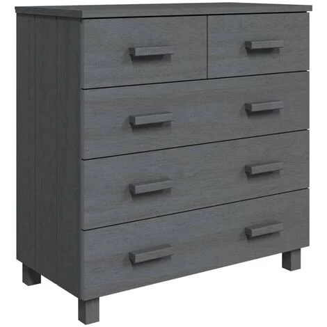 Ce buffet en bois constitue un supplément décoratif et pratique à votre décor. Cette armoire à tiroirs est en pin massif, ce qui la rend stable et robuste. Le buffet haut a 5 tiroirs coulissants lisses, offrant un grand espace de rangement pour garder vos divers essentiels quotidiens bien organisés et à portée de main. De plus, le dessus de table robuste est parfait pour afficher des objets décoratifs, des cadres photo et des plantes en pot.